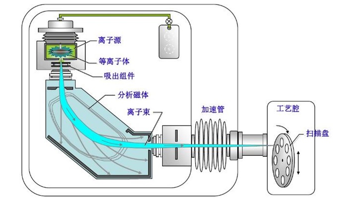 離子束控制:離子束通過磁場和電場的作用被控制,以精確地定位和定向注入到待處理的半導(dǎo)體材料中。